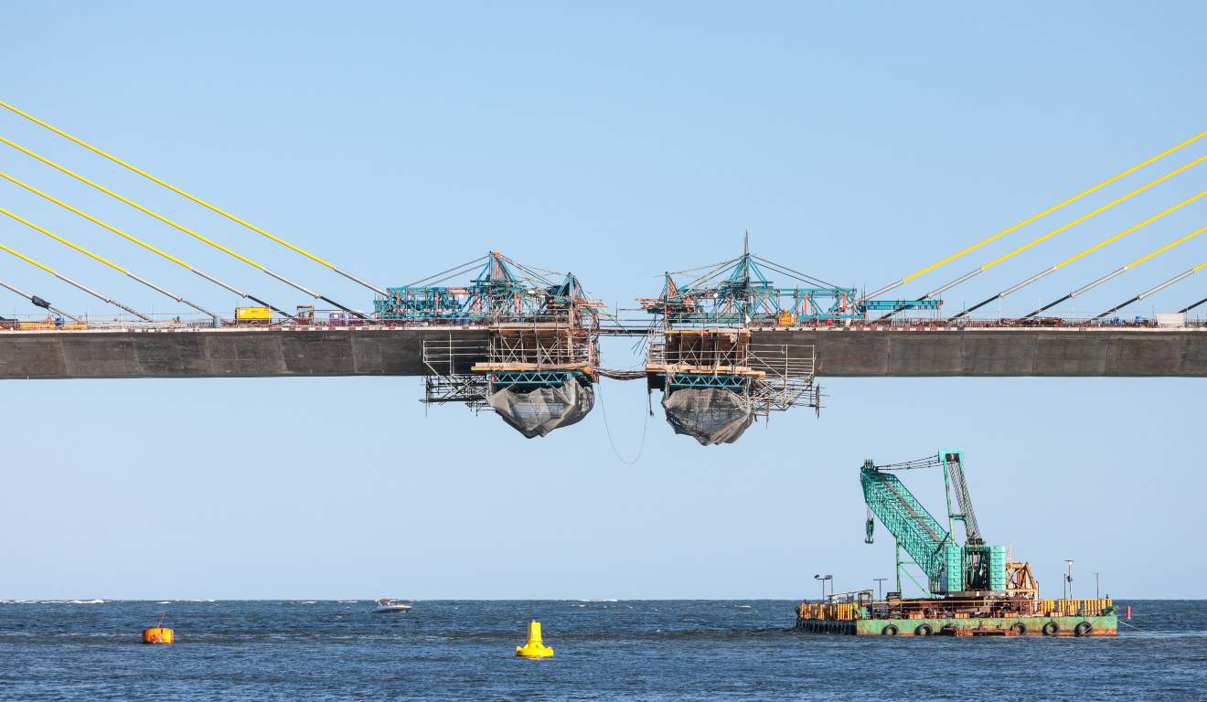 Antes dessa etapa, serão realizadas conferências milimétricas de alinhamento e nível, ajustes finos na protensão dos estais e monitoramento estrutural contínuo. Somente após todas essas verificações é que a aduela de fecho é concretada. A partir daí, o trecho estaiado deixa de funcionar como duas estruturas independentes e passa a atuar como uma única estrutura contínua, exatamente como previsto em projeto.