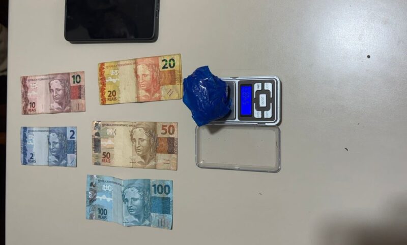 No quarto do suspeito, os policiais localizaram uma porção de substância análoga à cocaína, com peso aproximado de 54 gramas. Em revista pessoal, também foram encontrados dinheiro em espécie e um aparelho celular.