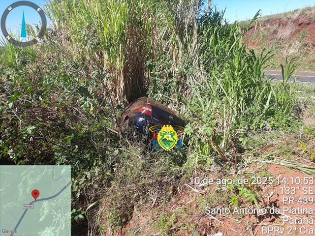 Por volta das 12h20 deste domingo, 10 de agosto, um acidente foi registrado no km 50+700 da rodovia PR-439, em Santo Antônio da Platina, no Norte Pioneiro do Paraná. O veículo envolvido, um Chevrolet Prisma com placas de Abatiá, trafegava no sentido Ribeirão do Pinhal–Santo Antônio da Platina quando o condutor perdeu o controle da direção.
