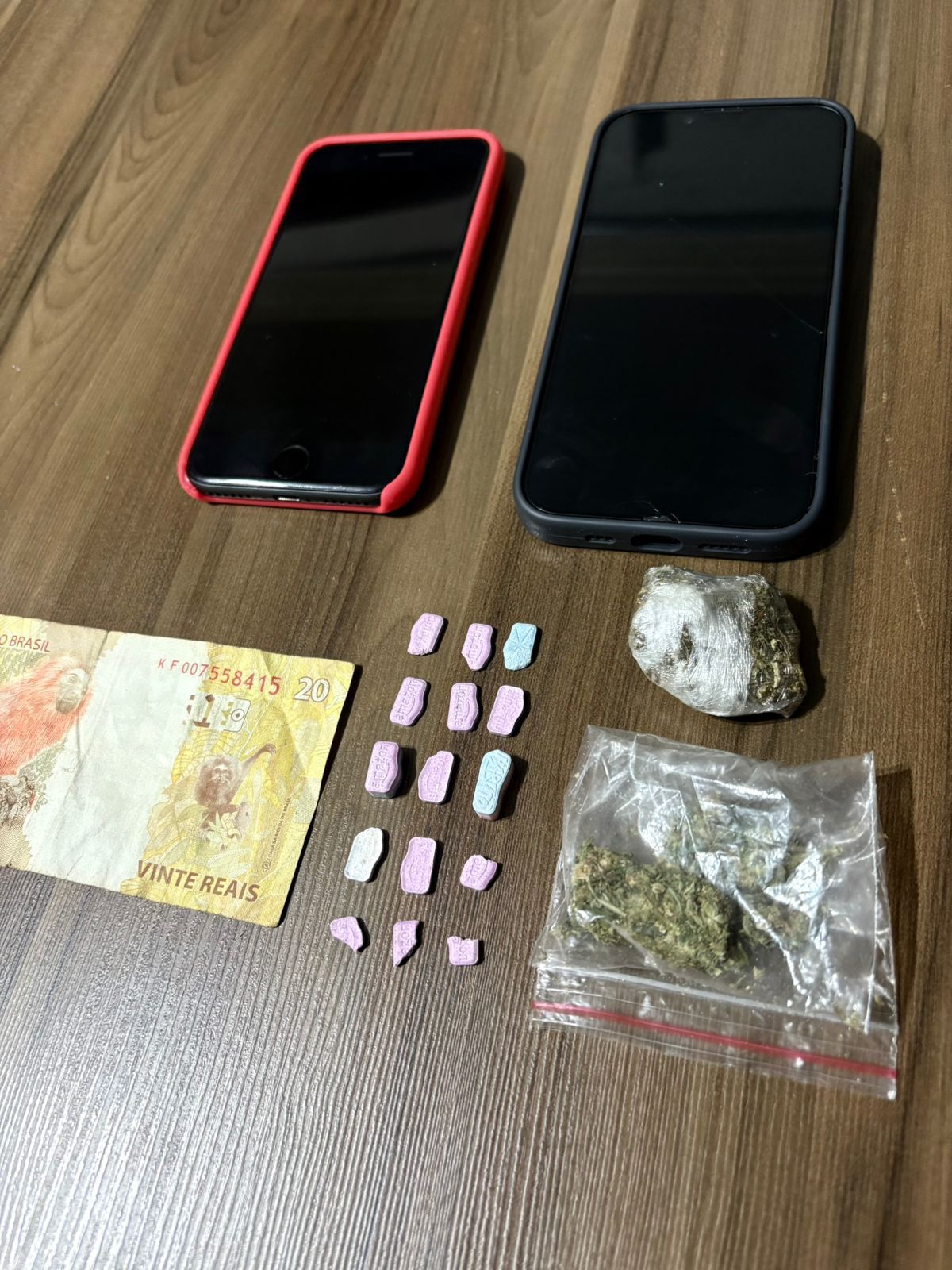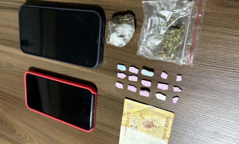 Durante as buscas na residência, os policiais localizaram mais drogas em um dos cômodos, incluindo comprimidos de substância análoga ao ecstasy e outra porção de maconha. Indícios de comercialização também foram constatados por meio de mensagens recebidas em aparelho celular apreendido no local.