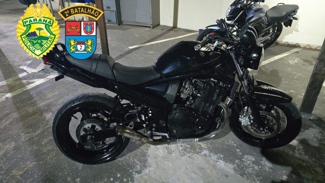 Na manhã desta data, a equipe policial abordou uma motocicleta preta que estava produzindo ruído alto durante patrulhamento na Rua Doutor Vicente Machado. O condutor não possuía CNH e moto recolhida ao pátio da Polícia Militar.