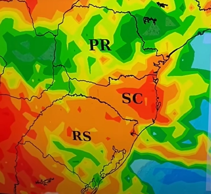 Essa mudança deve trazer chuvas irregulares para a região Sul. “Observa-se um aumento dos volumes de chuva na comparação com os últimos dez dias, à medida que, na próxima semana, cessam os efeitos da bolha de calor e a chuva retorna para a região, com a passagem de uma frente fria”, diz a previsão