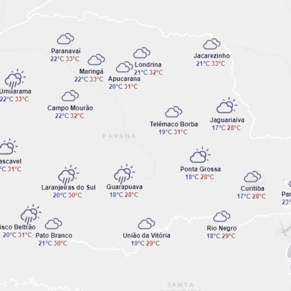 Segundo o Simepar, as temperaturas máximas no Paraná devem ultrapassar 30°C nos próximos dias, podendo atingir até 36°C em algumas regiões.