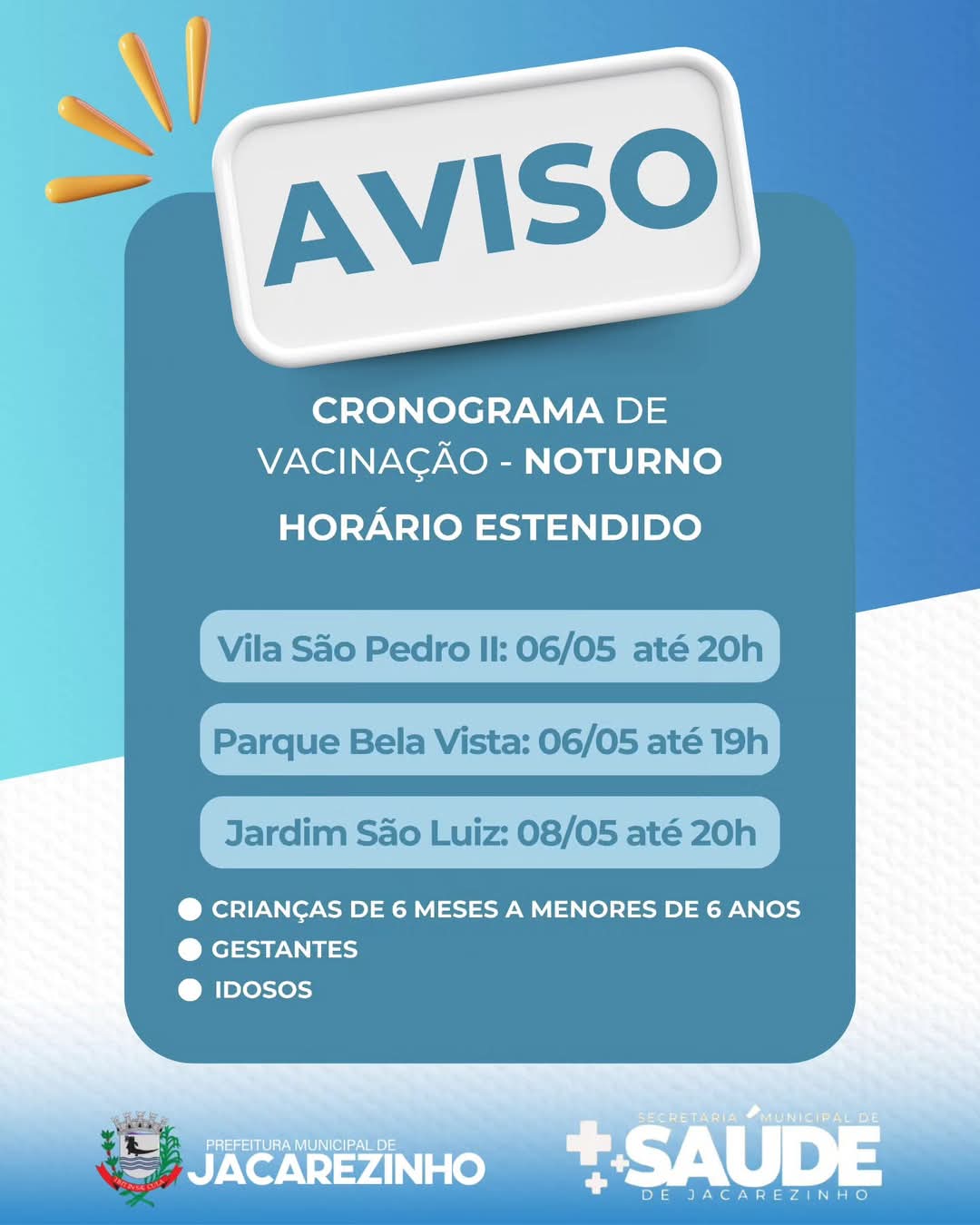 A Prefeitura de Jacarezinho anunciou a ampliação do horário de atendimento para a vacinação contra a Influenza em algumas unidades de saúde do município nesta semana. A medida faz parte da estratégia para aumentar a cobertura vacinal e facilitar o acesso da população à imunização.