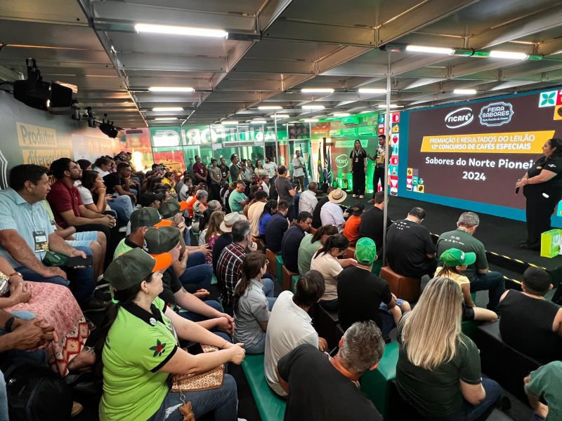 RECORDE – E a Ficafé não poderia encerrar sem bater um recorde. O lote de cafés especiais de Claudemir Inocêncio da Silva, de Jaboti, atingiu 89,71 pontos e foi arrematado por R$ 4 mil a saca – valor é considerado um recorde para os grãos comercializados dentro da feira. Em segundo lugar, Antônio Carlos Delmônico, de Pinhalão, com 86,93 pontos e a saca vendida a R$ 3,8 mil. E o terceiro lugar na categoria Natural ficou com Francisco Caría, também de Pinhalão, com 86,86 pontos e a saca de 30 kg arrematada por R$ 3,5 mil no leilão;