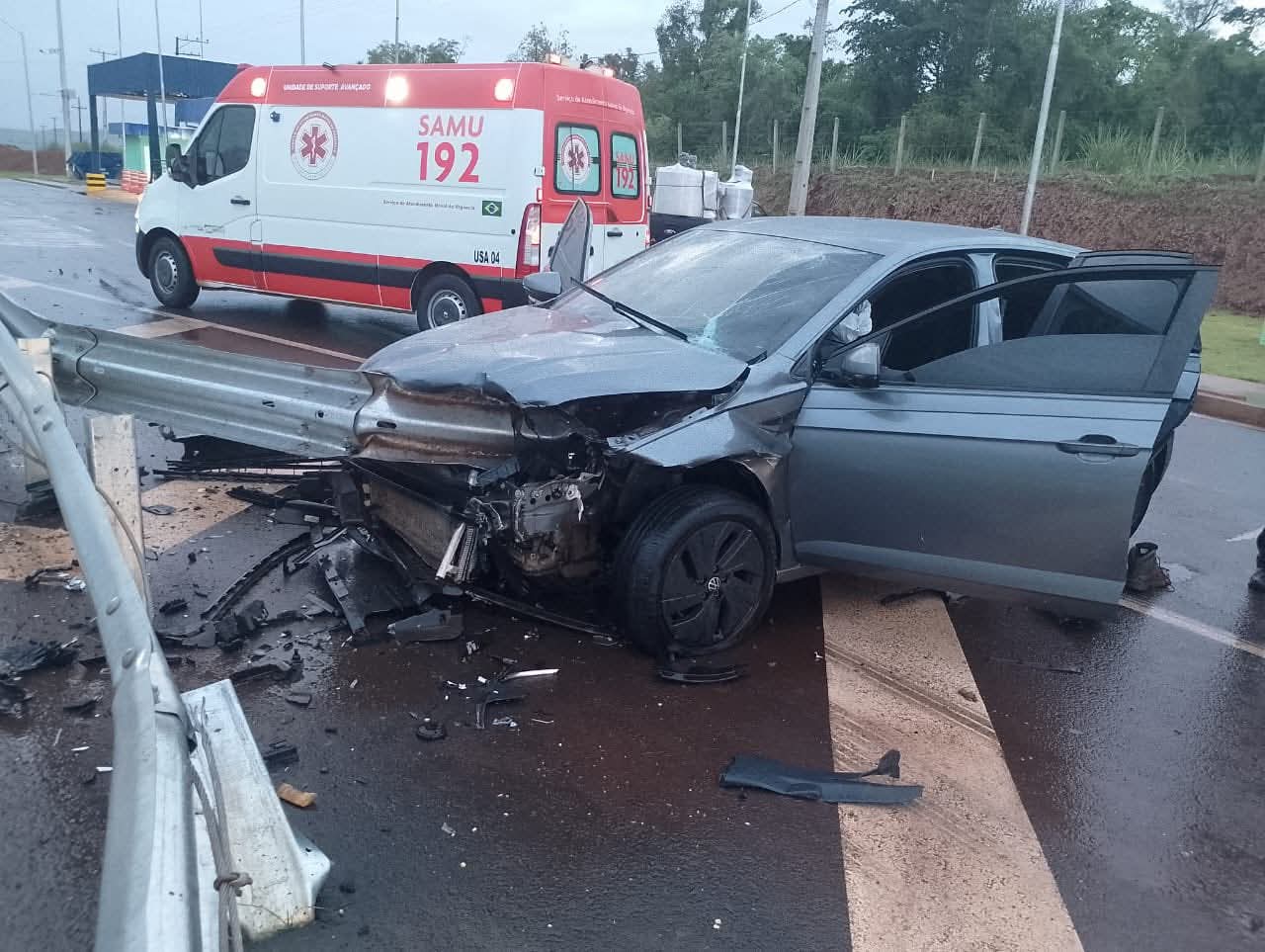 No local, um jovem de 28 anos, morador de Cornélio Procópio, conduzindo um VW Polo cor cinza com placas de Cornélio Procópio Pr, onde o mesmo que estava sozinho no veículo, seguia sentido Santa Mariana a Bandeirantes, quando, por motivos ainda desconhecidos, perdeu o controle do veículo, colidindo fortemente contra o guard rails que fica em frente à base da concessionária.